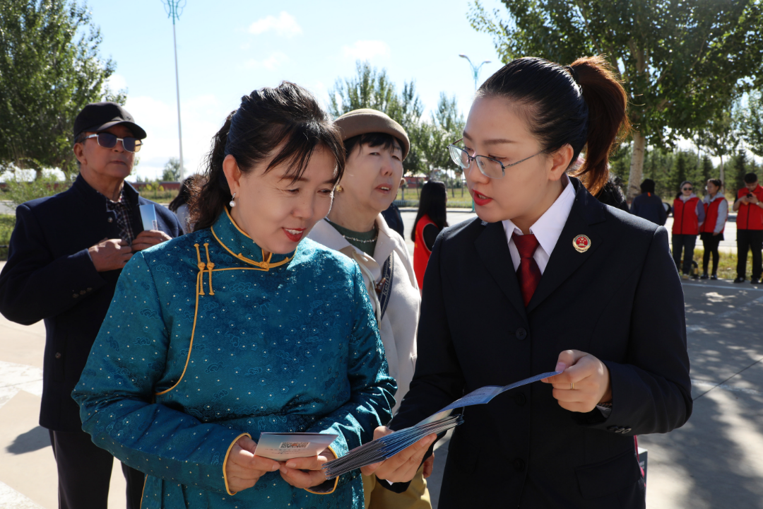 活动中,社区居民围绕铸牢中华民族共同体意识主题献上精彩文艺节目,展现了民族文化的深厚底蕴与独特魅力。检察人员向群众发放了《内蒙古自治区促进民族团结进步条例》、国家司法救助规定等宣传材料,并用通俗易懂的语言讲解法律知识,引导居民增强民族团结意识和法治观念,依法维护自身权益。